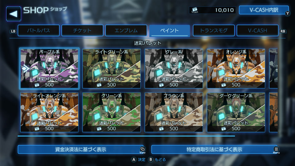 戦術機に貼ることのできるエンブレムを購入できます。